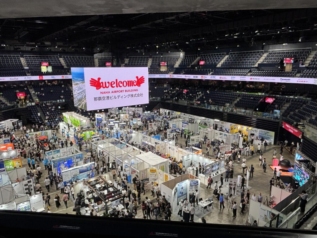 11月に開催されたリゾテックエキスポ。アリーナいっぱいにブースが並び、企業、自治体、大学、スタートアップがひしめき合う大規模イベント。この展示会では、県内外・海外の企業が集まり、IT・DXの最新ソリューションを紹介していた。沖縄の産業を一段上へ引き上げる「DXの交差点」のような場になっていて、観光向けのソリューションから、セキュリティ、地域産業の高度化までビジネスのヒントや最新動向を学べる場としても非常に充実していた。